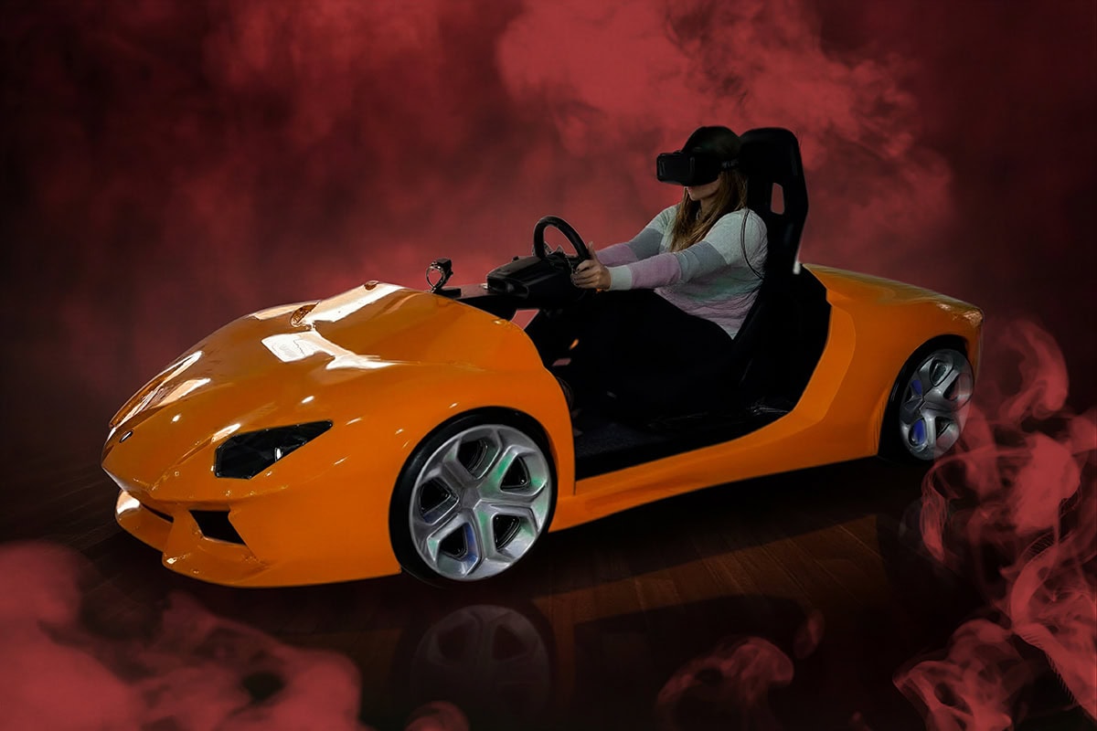 It attracts attention with its bright appearance and is suitable for location in shopping centers. The body of the simulator is a complete copy of the Lamborghini Aventador in 1: 2 scale.
